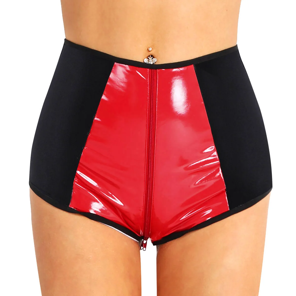 S-XXL, черный и красный цвет, женское нижнее белье из искусственной кожи с высокой талией и застежкой-молнией для танцев