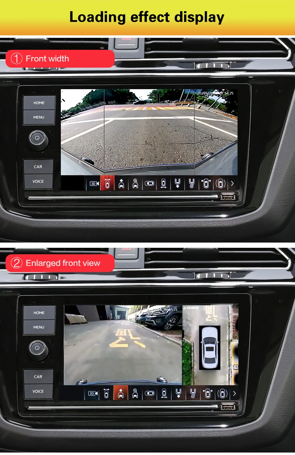 2. Когда автомобиль загорится и монитор не показывает видео с камер, система будет записывать в фоновом режиме. Вид птицы и вид спереди будут записаны.