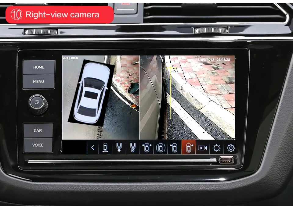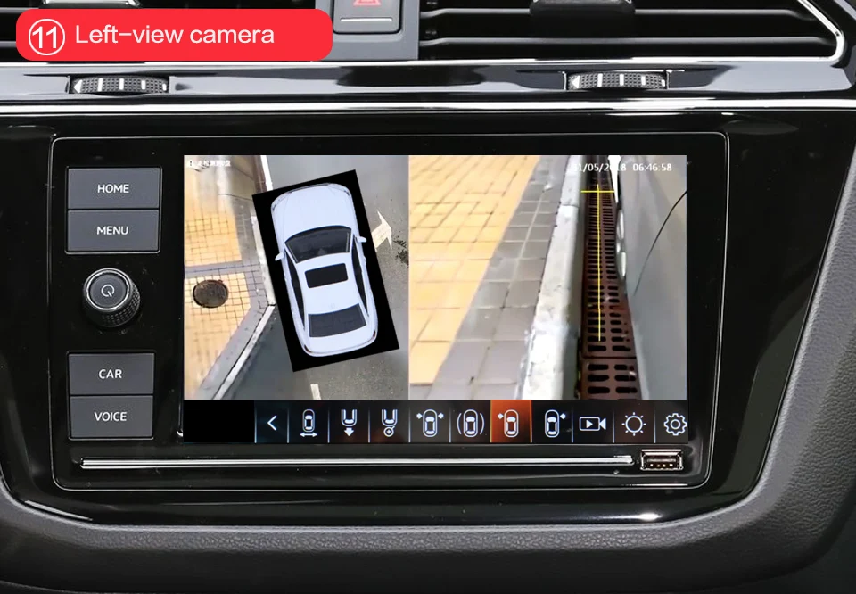 3. Когда автомобиль загорится и монитор показывает видео с камер, все сцены, отображаемые на мониторе, будут записаны. (Это может быть вид птицы и вид слева, справа, спереди или сзади).