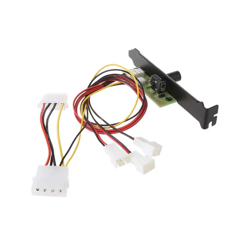 Источник питания регулятора имеет большой 4-контактный штекер и гнездо, выход с 3 частями 3-контактных интерфейсов вентилятора.