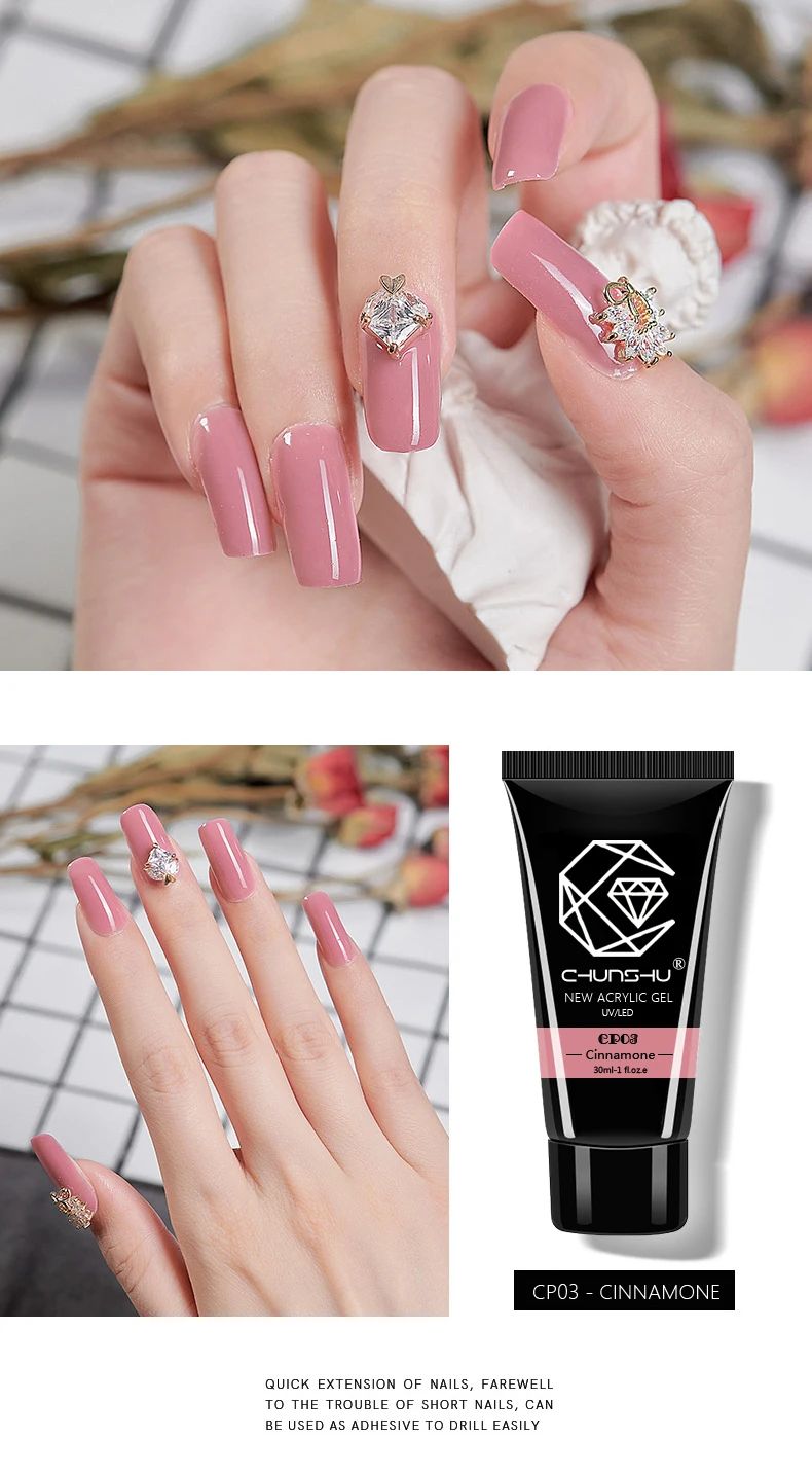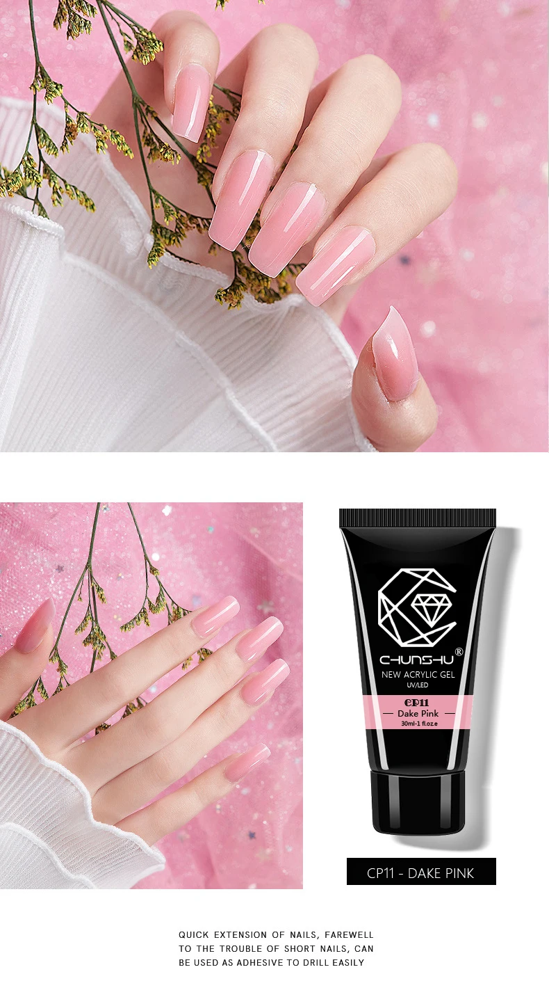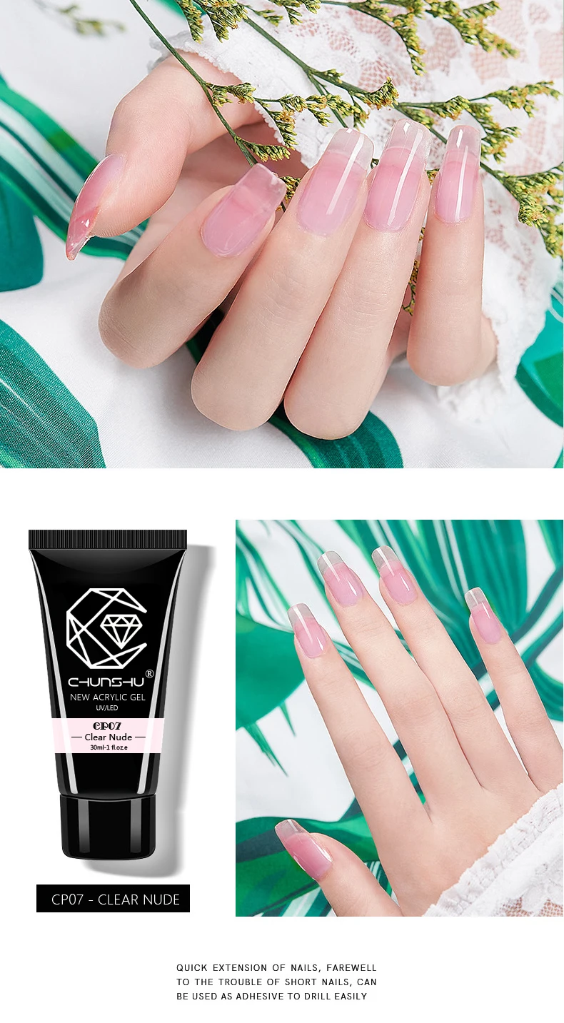 CHUNSHU New Arrivals 30G Poly Builder Nail Gel Polish UV LED Acrylic Jelly Hard Gel Fast Extending Soak Off Manicure Nails Brush