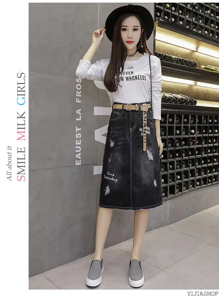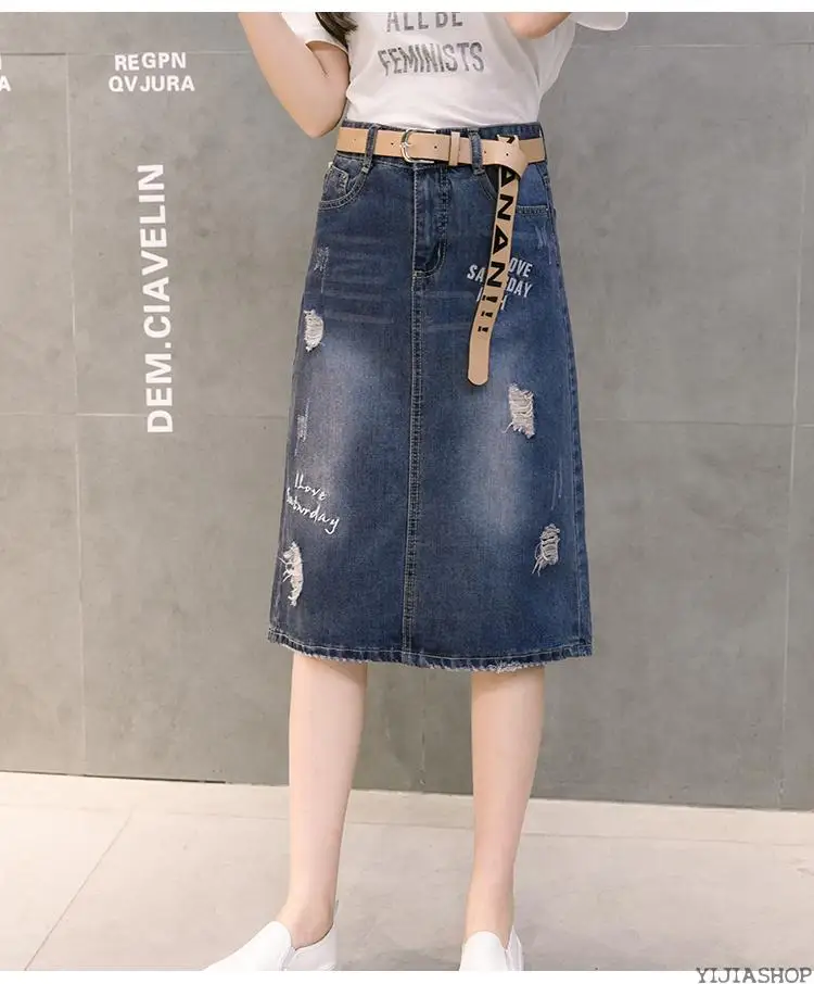 2020 Высококачественная Свободная юбка, летняя джинсовая юбка средней длины, Женская хлопковая повседневная юбка с разрезом, черная джинсовая юбка, Saia Femme