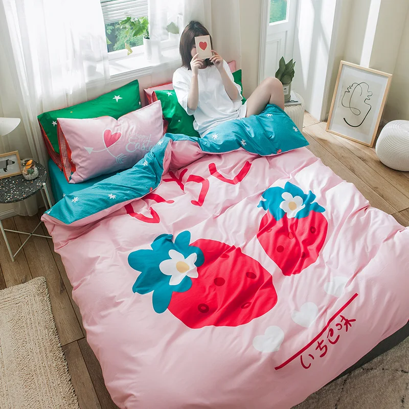 Набор постельного белья из 100% хлопка для близнецов с фруктами и клубникой, пододеяльник, простыня, наволочки, постельное белье для девочек, декор для спальни