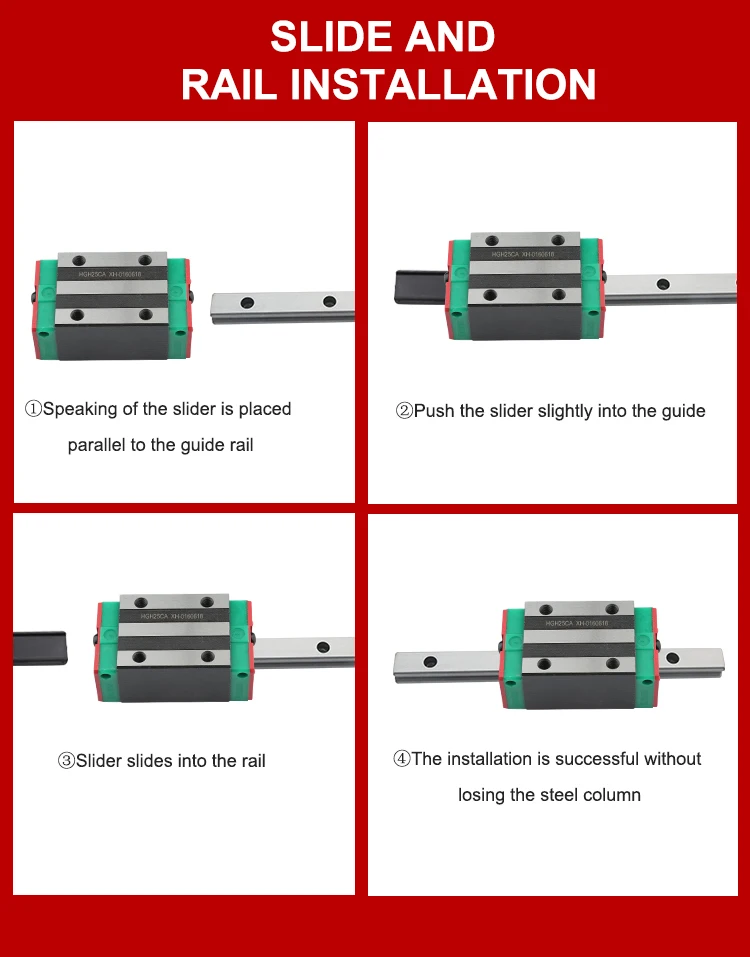 Размер линейной направляющей может храниться в пределах определенного уровня, кронштейн слайдера может предотвратить падение стального шарика, и пользователь может заменить слайдер или направляющую, или даже заменить слайдер.