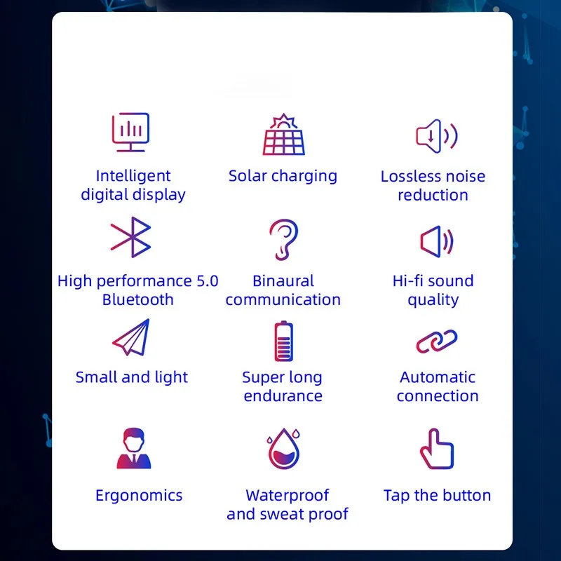 Универсальные солнечные наушники TWS Bluetooth, беспроводные наушники с сенсорным управлением, 3D стерео, Hi-Fi, спортивные наушники для Iphone, Samsung, Xiaomi