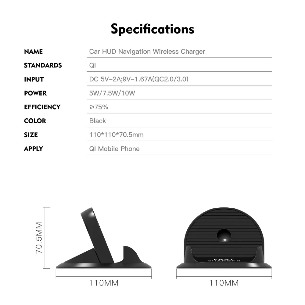 Беспроводное зарядное устройство 1,10 вт 2. Мобильный телефон стеллаж для выставки товаров, подходит для автомобилей, хорошо навигации 3. Противоскользящая накладка позволяет избежать вибрации при разрыве или внезапном торможении. 4. Разделите провода печатной платы, чтобы избежать риска нагрева во время зарядки.