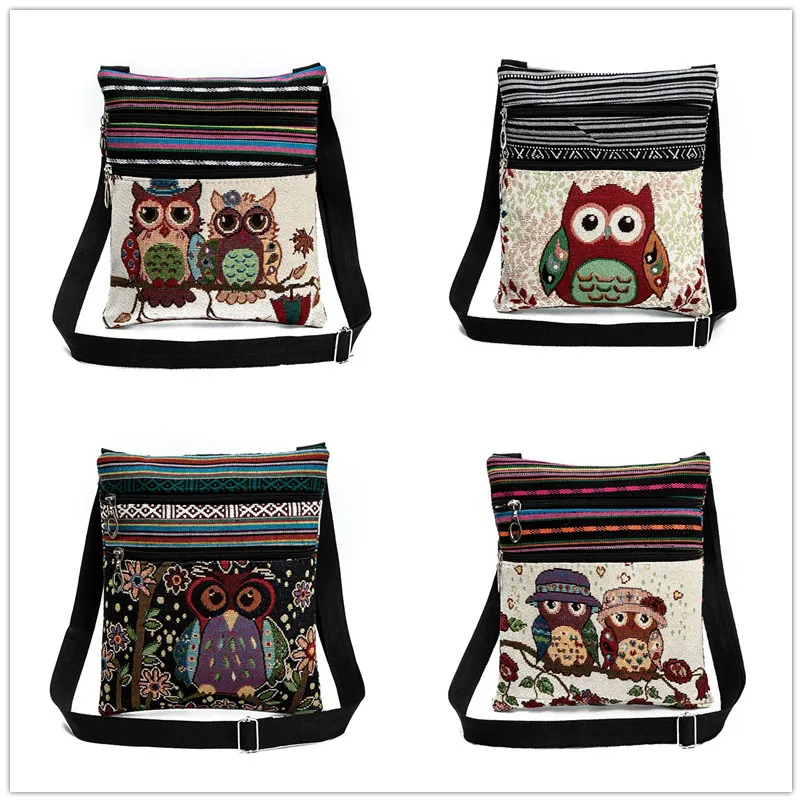 Мини-сумка на плечо с принтом совы, модная женская маленькая Дорожная сумка-мессенджер на двойной молнии, маленькая дорожная сумка для девочек-подростков
