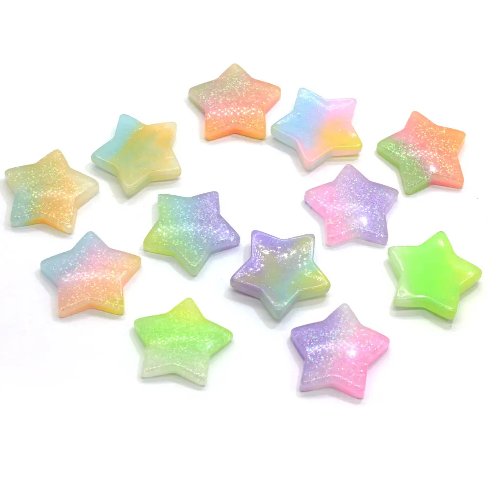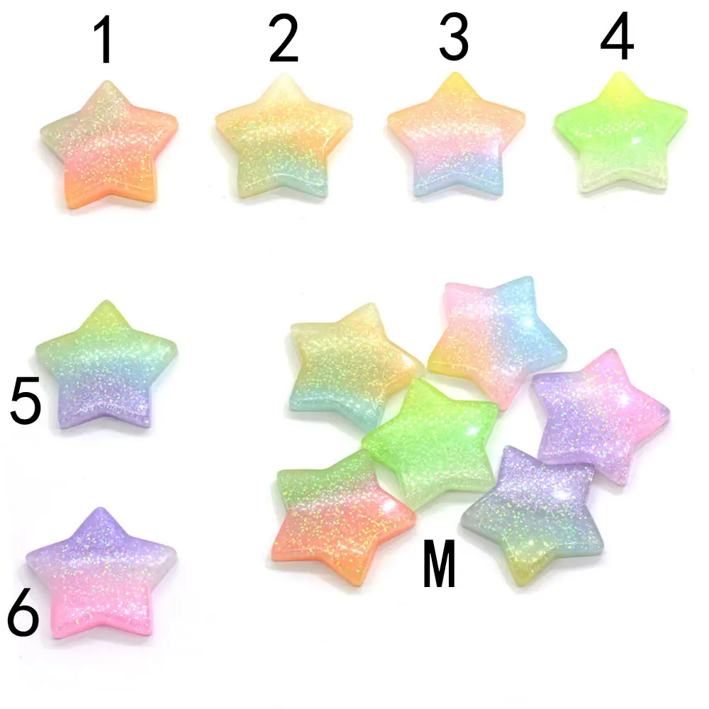 Дешевые 24 мм радужные звезды смолы кабошон плоская задняя часть смолы Flatbacks бусины бант для волос ремесла украшения поставка скрапбук DIY