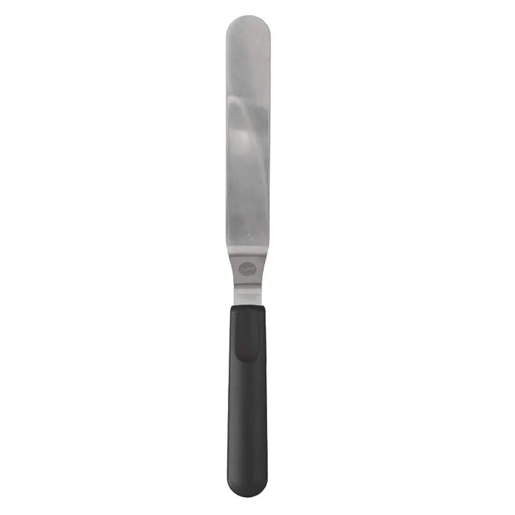 Особенности: 1. Корпус ножа из нержавеющей стали прочный и чистый 2. Поверхность гладкая и легко моется, не легко ржавеет 3. Нескользящая пластиковая ручка PP дизайн: Экономичная и удобная 4. Угол режущей головки является разумным и простым в использовании Описание: 1. Продукт подходит для использования на домашней кухне, отвечает за декорирование крема для торта и изготовление 2. Это может сделать вас наслаждаться удовольствием от приготовления пищи и облегчить приготовление пищи Технические характеристики: Материал: нержавеющая сталь, PP пластик Размеры: 10 дюймов Цвет: черный, серебристый Посылка включает в себя: 1 * нож