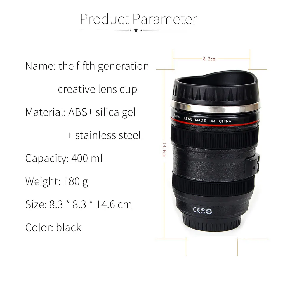 DIY Реалистичная чашка для воды для камеры, 400 мл, прочный ABS объектив, для путешествий, кофейная кружка с крышкой, новые подарки, Термокружка
