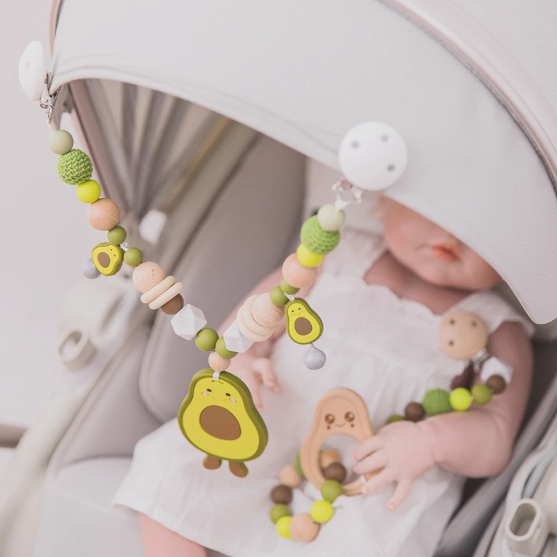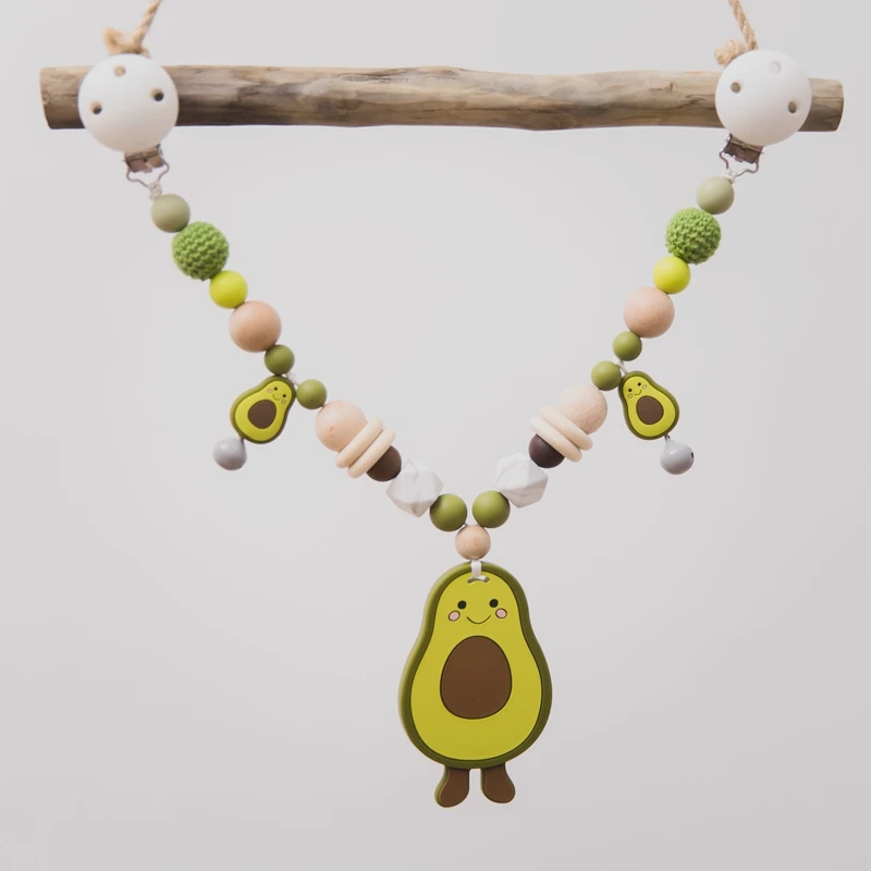 Детский Прорезыватель для зубов, зажим для коляски, крючком, авокадо, подвеска для прорезывания зубов, подвесная АРКА, подвесной держатель для детской мобильной кровати, игрушка для детской кроватки