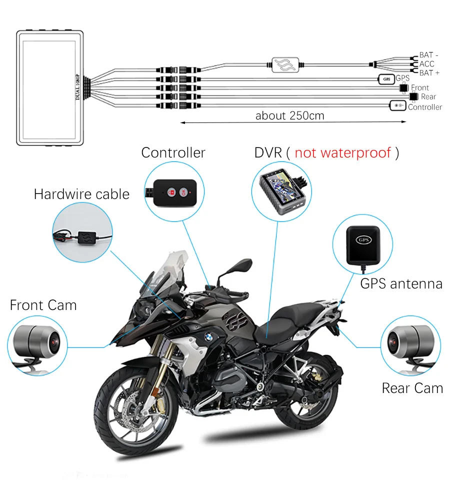 -Видеорегистратор не является водонепроницаемым! Внимание! -Все другие аксессуары являются водонепроницаемым дизайном IP67. Не нужно беспокоиться о них, пожалуйста, не стесняйтесь использовать его в дождливые дни.