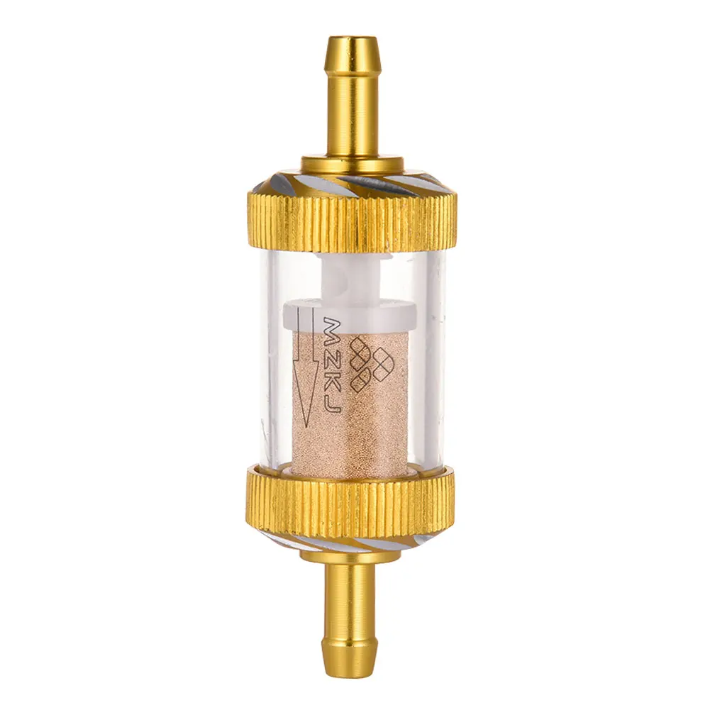 1. Прост в установке и практичен в использовании, так что вы можете легко открутить чистящий фильтр. 2. Выполненный из сплава алюминия и стеклянной оболочки, вы можете четко видеть чистоту бензина внутри фильтра. 3. Используется Резьбовая конструкция, поэтому масляный фильтр мотоцикла можно снять и очистить и использовать несколько раз. 4. Соединение из алюминиевого сплава обработано ЧПУ, отполировано и хромировано.