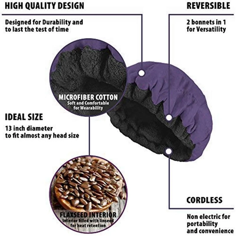 Функция: Эта нагревательная крышка имеет льняное семя в каждой верхней части. После нагревания в течение определенного периода времени, он может эффективно поддерживать тепло и способствовать здоровому росту волос.