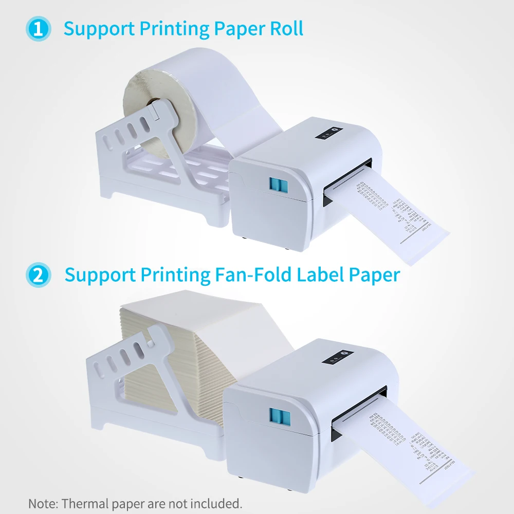 Внешняя бумажная подставка. Поддержка печати тепловой непрерывной бумаги, этикетки, сложенной бумаги, бирки бумаги. Принтер может печатать максимальную ширину бумаги 110 ± 0,5 мм.