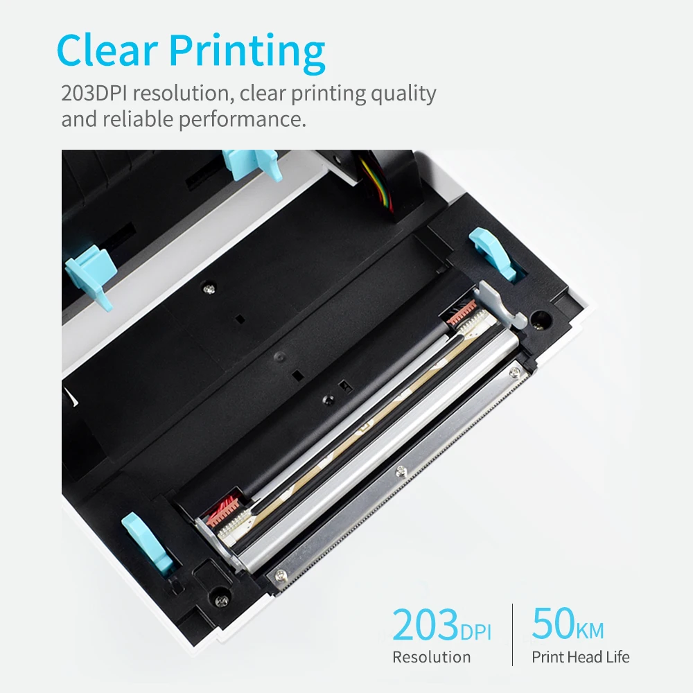 Используется двойной Средний датчик, который может быстро определить местоположение бумаги, убедитесь, что место печати точное. Разрешение 203DPI, четкое качество печати и надежная производительность, высокая скорость, скорость печати может достигать 160 мм/сек (макс.).