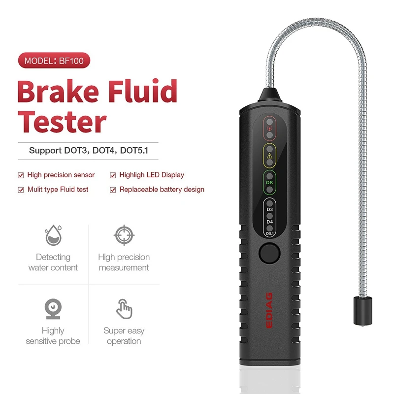 BF100 поддерживает DOT3, DOT4, DOT5.1; BF100 с высокоточным датчиком; BF100 поддерживает испытание жидкости типа mulit; BF100 со сменным дизайном батареи; BF100 с безопасным, быстрым, портативным, легким, доверительная и Точная функция; BF100 с highligh светодиодный дисплей