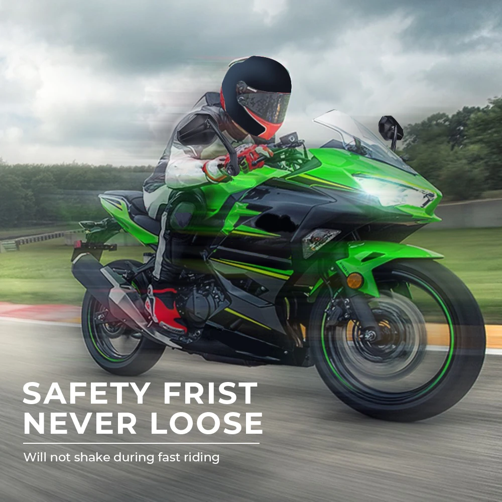 3. Вращение на 360 градусов: зеркало на руль мотоцикла с полностью вращающимся на 360 градусов основанием, которое можно регулировать в любом направлении, чтобы вы могли смотреть в любом направлении спины.