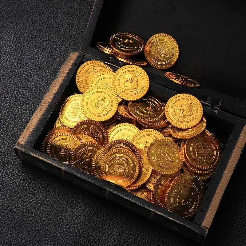 1 комплект/101 шт, креативные забавные пластиковые вечерние золотые монеты на Хэллоуин, золотые монеты, пираты, золотые монеты, игровые игрушки для детей, мальчиков, детей