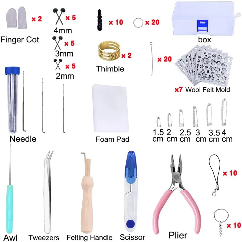 2,182 штук шерстяного войлока-посылка включает в себя 42 Цвета Шерсть-ровинг (приблизительно 5g/цвет). Набор из шерстяного войлока также может предоставить вам профессиональные инструменты для изготовления шерстяного войлока, что позволяет вам легко подготовить все необходимые инструменты.