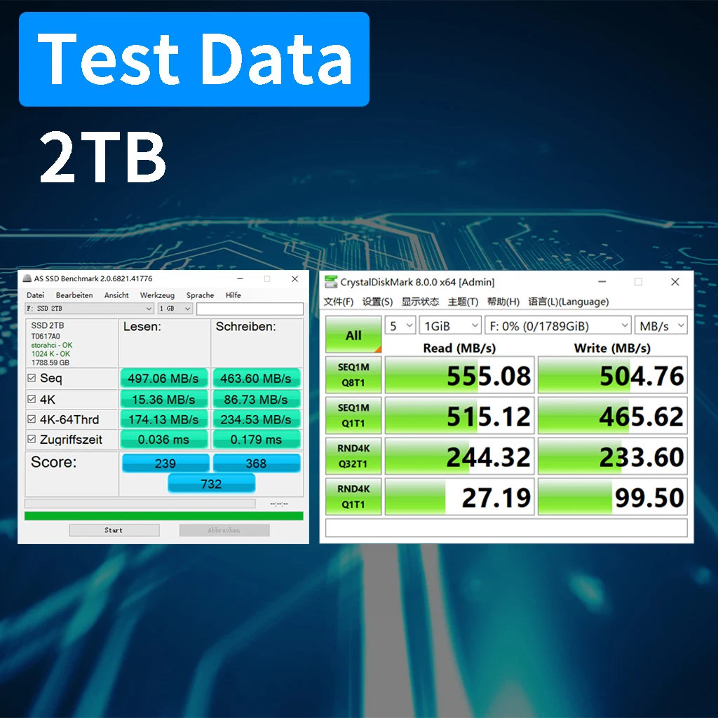Он может достигать скорости чтения и записи до 550 МБ/с./с и 500 МБ/с./с, которые в 10 раз быстрее, чем традиционные жесткие диски.