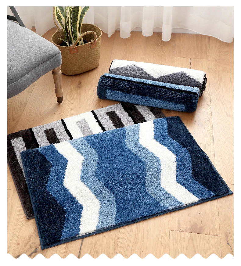 Голубой полосой Стиль Ванная комната ковролин зал коврик для ванной полиэфирный коврик для ванной коврик для туалета ковер коврик у двери ванной ковры